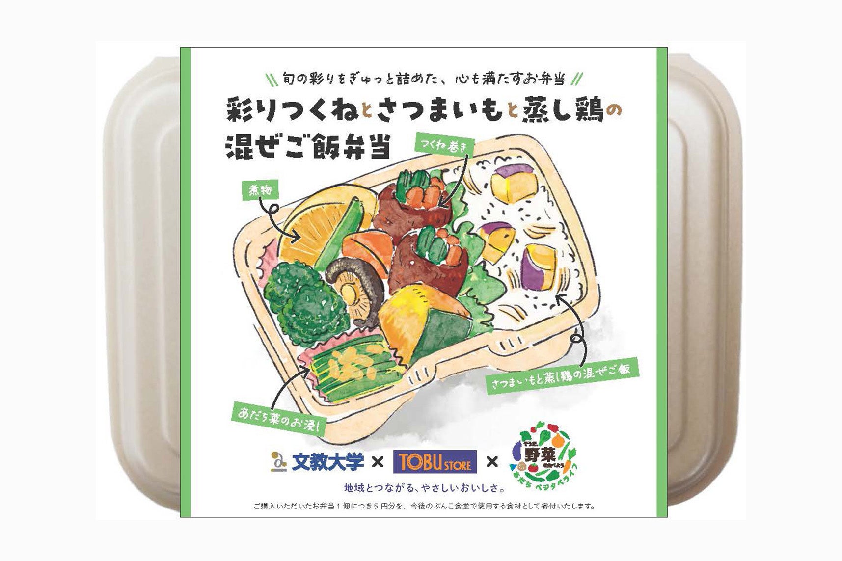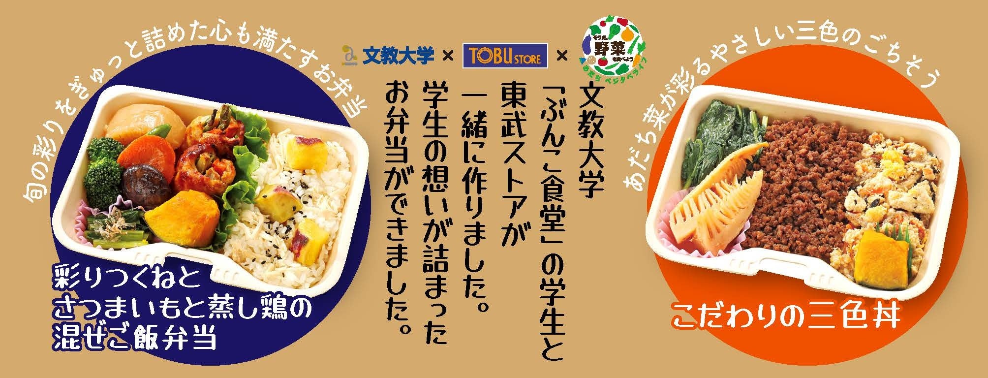 東武ストアと足立区からの提案をきっかけに実現したプロジェクトで、「ぶんこ食堂」で過去に提供したメニューを基に、東武ストアがアレンジを加え、足立区の管理栄養士による監修を経て、「①彩りつくねとさつまいもと蒸し鶏の混ぜご飯弁当」と「②こだわりの三色丼」、2種類のコラボ弁当が誕生しました。