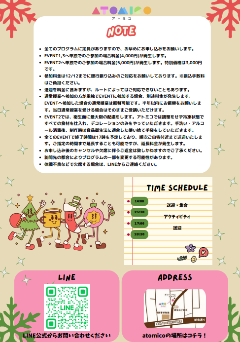 お友達と参加でatomico生もお友達も特別価格で参加できます。