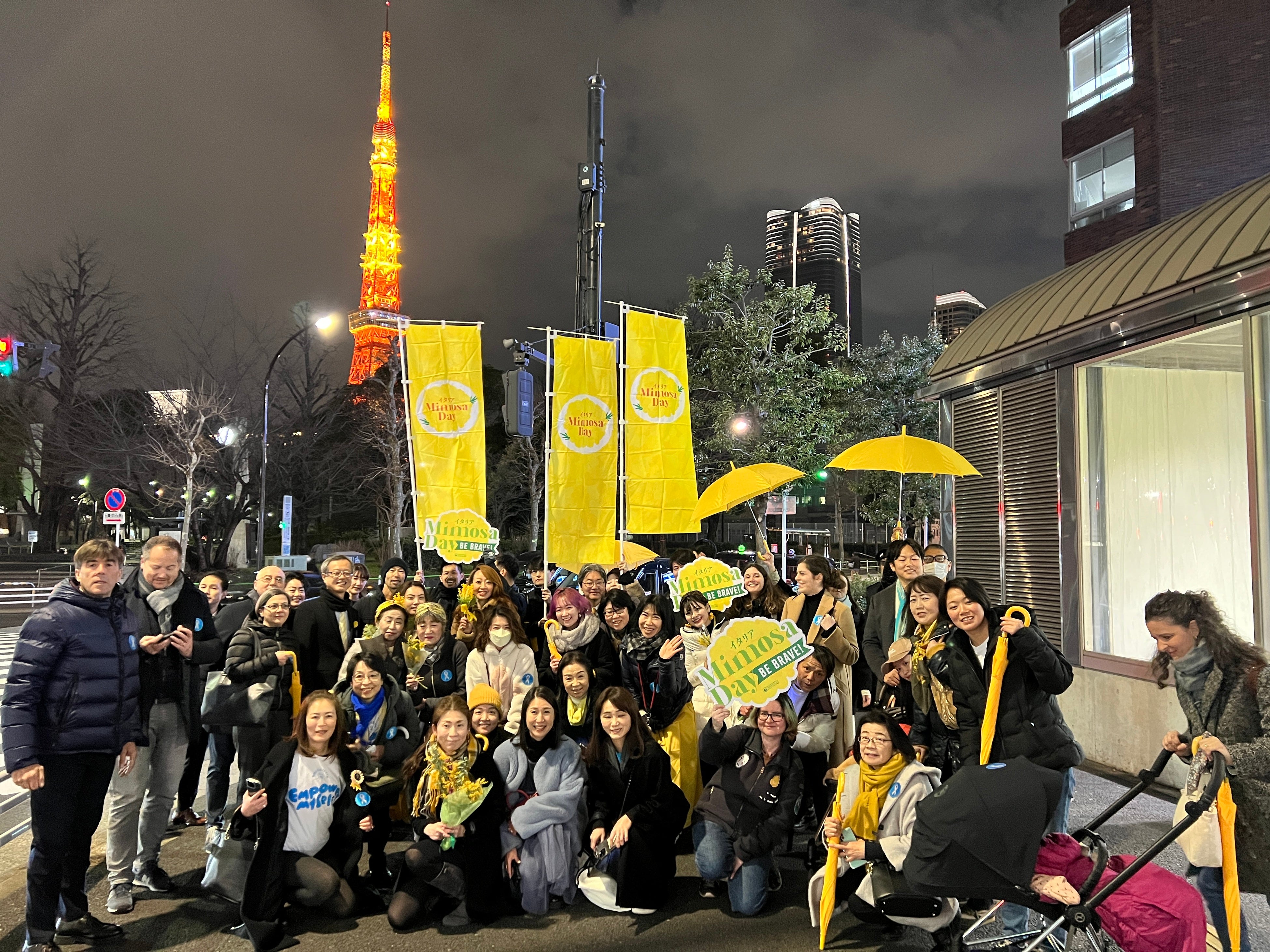 今年で4年目を迎えるMimosa day。3月8日の国際女性デーをウォーキングで祝福します。ミモザの日にちなんで黄色い「何か」を身に着けて、目的地の東京タワーまで約30分のパレードを行いました。