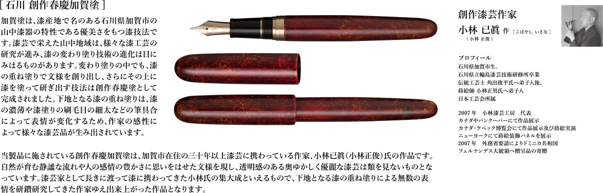 蓋・胴:エボナイト材、石川創作春慶加賀塗