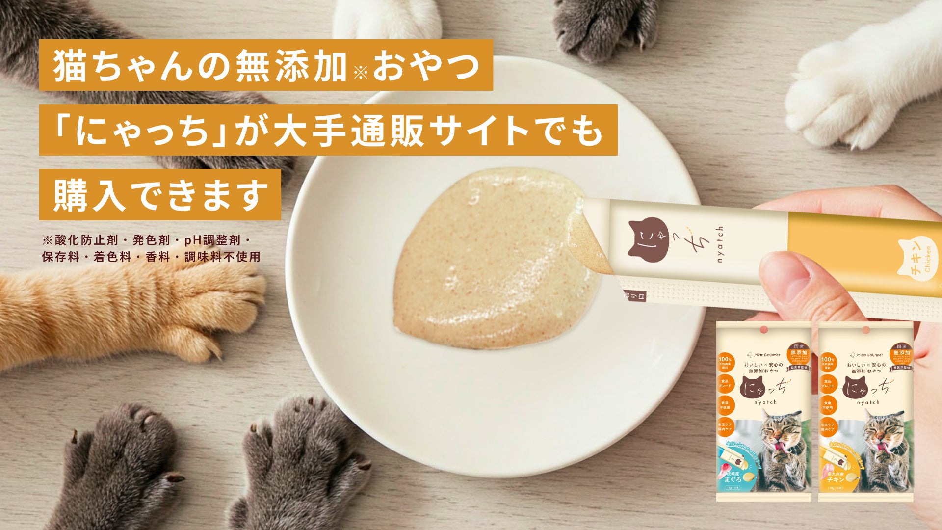 フレッシュドッグフード(※1)2年連続売上No.1(※2)、会員愛犬数30万頭(※3)を突破した愛犬用手作りごはんブランド「CoCo Gourmet(以下:ココグルメ)」、愛猫用手作りごはんブランド「Miao Gourmet(以下:ミャオグルメ)」、愛猫用おやつ「にゃっち」を開発・販売する株式会社バイオフィリア(本社:東京都新宿区、代表:岩橋洸太、以下:当社)は、3月14日(金)より、楽天市場、Amazon、Yahoo!ショッピングにて、優れた食べっぷりで話題の無添加(※4)ピューレおやつ「にゃっち」の販売を開始します。