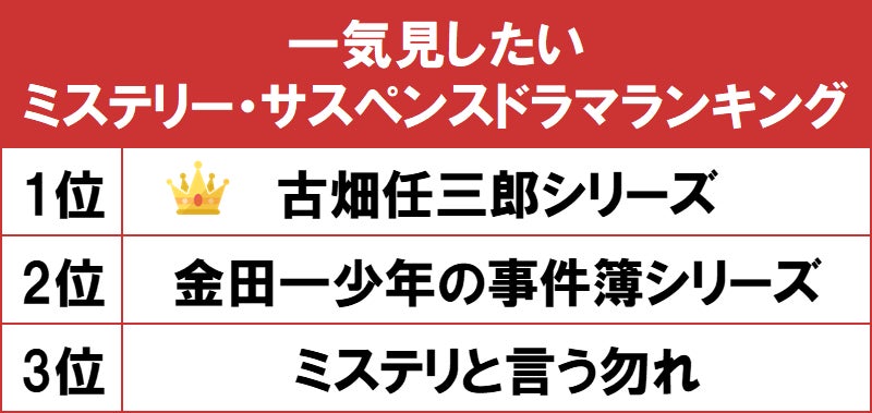 1位は『古畑任三郎』シリーズ!gooランキングが「一気見したいミステリー・サスペンスドラマランキング」を発表