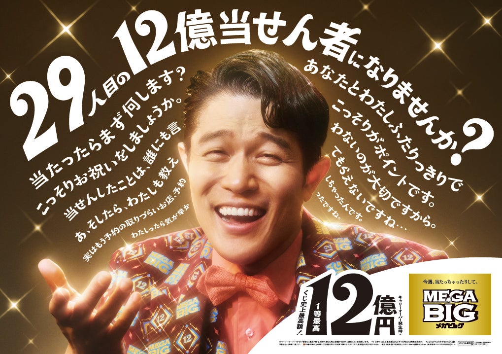 独立行政法人日本スポーツ振興センター(JSC)は、1口300円で1等最高当せん金が日本くじ史上最高額※1の12億円※2となる、スポーツくじ「MEGA BIG」を毎週販売※3しており、これまでに28本の1等12億円当せんが誕生※4しております。