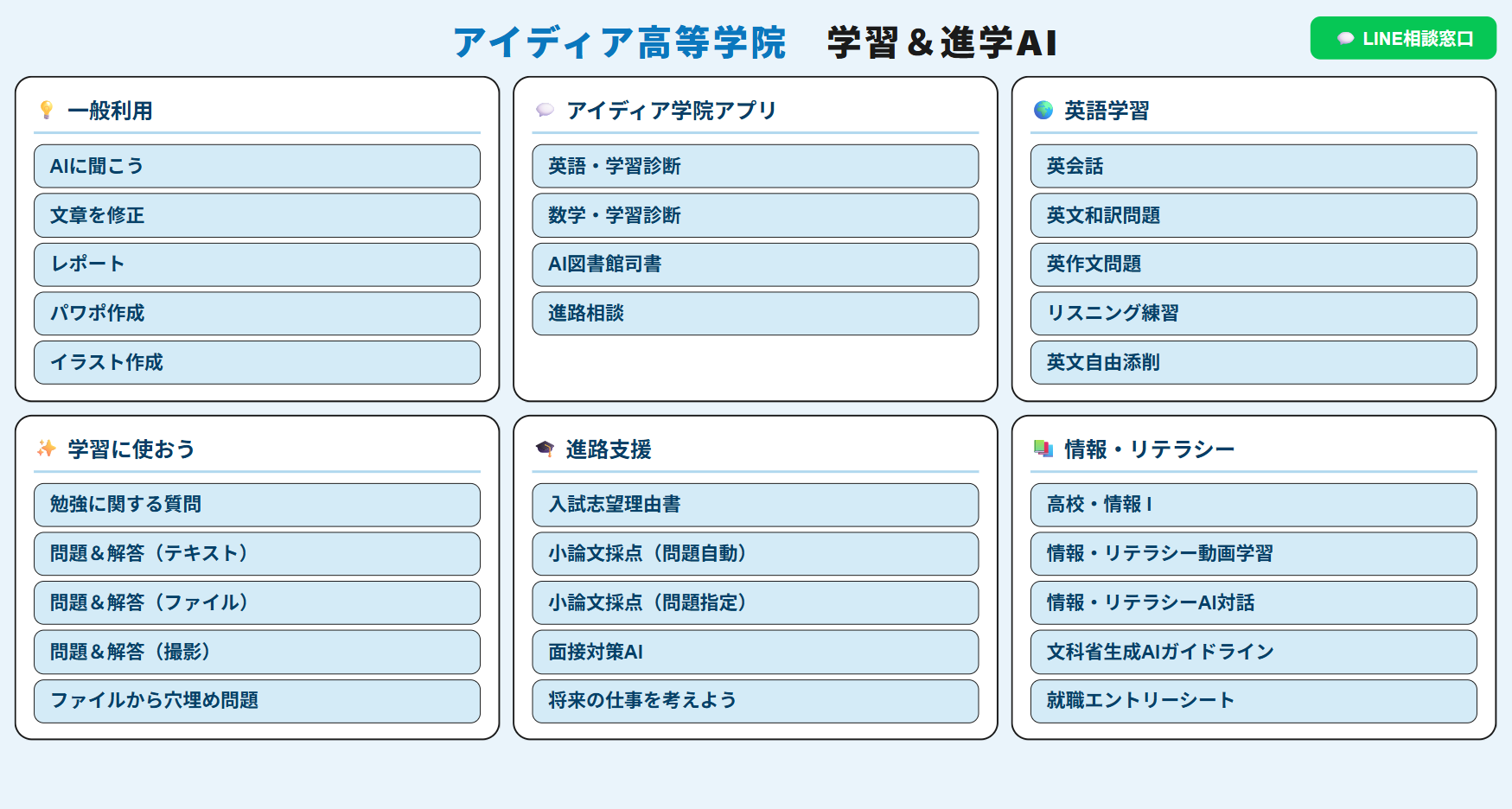 さらに、生徒が気軽に相談できる環境を整えるため、LINEを活用したカウンセリングの提供も開始いたします。学習支援だけでなく、生活面や進路に関する相談も含め、生徒の総合的なサポートを実現します。