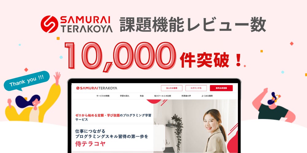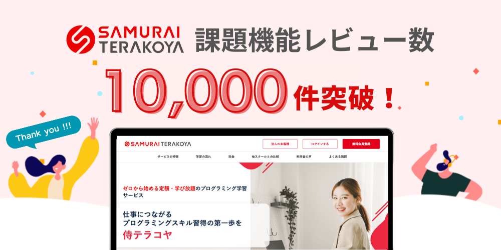 侍テラコヤの「課題機能」レビュー数が10,000件を突破!