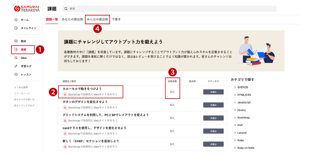 侍テラコヤ「課題」ページ:https://terakoya.sejuku.net/practices