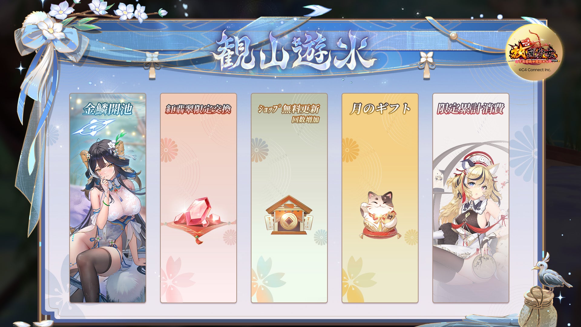 『金鱗開池』『紅翡翠限定交換』『ショップ無料更新回数増加』『月のギフト』『限定累計消費』など、盛りだくさんのイベントをご用意しております!