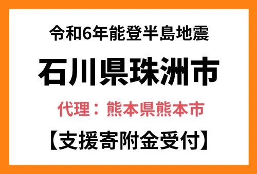 令和6年能登半島地震にて甚大な被害を受けた珠洲市に代わり、熊本市がふるさと納税の代理寄附受付を開始しました。