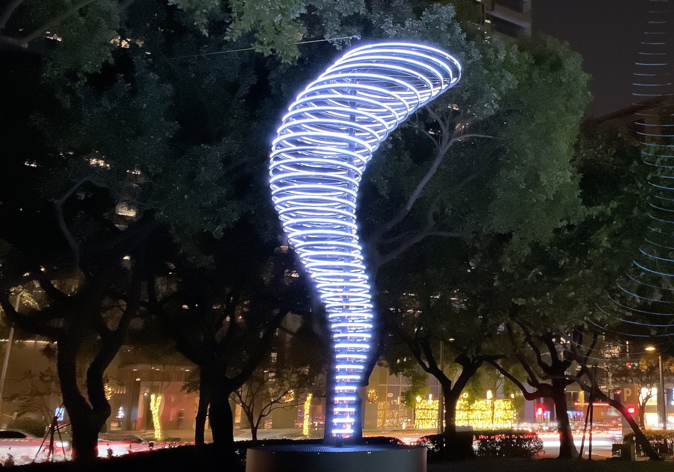 自然界における破壊的な現象「竜巻」を光で表現したアートインスタレーション。都市に突如として現れる光の竜巻が巻きあがっていく様子は、来たる「人新世」を問いかける。