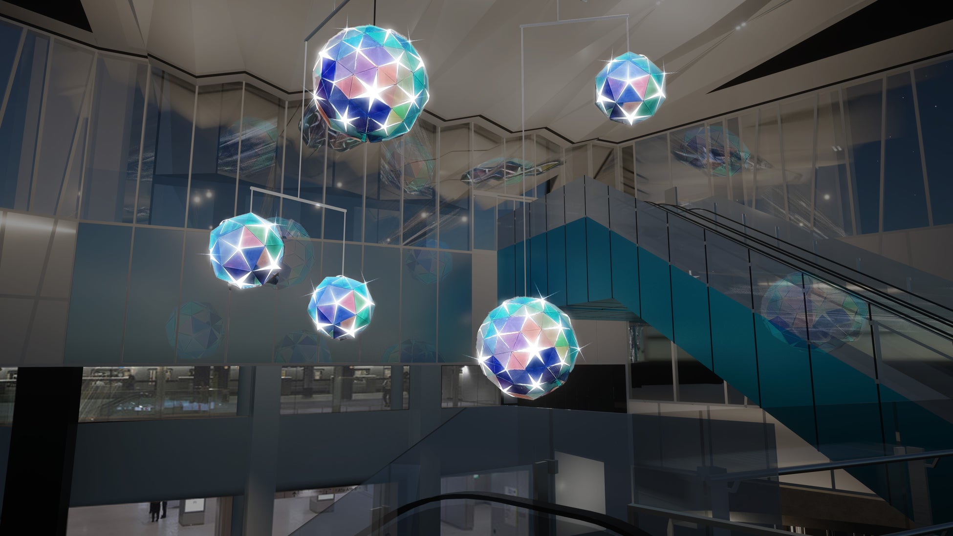 虎ノ門ヒルズ ステーションタワーの建築をデザインした重松象平/OMA NYによる、特別インスタレーション。人、水、自然光、電車、車などの「動き」が集約されるアトリウムに浮遊するモビールは、変わりゆく空気や光の動きを可視化する。五つの星は虎ノ門ヒルズエリアの五棟の建築群であり、それらがゆっくりと回転する様は、ダイナミックに変化する虎ノ門の街を表現している。