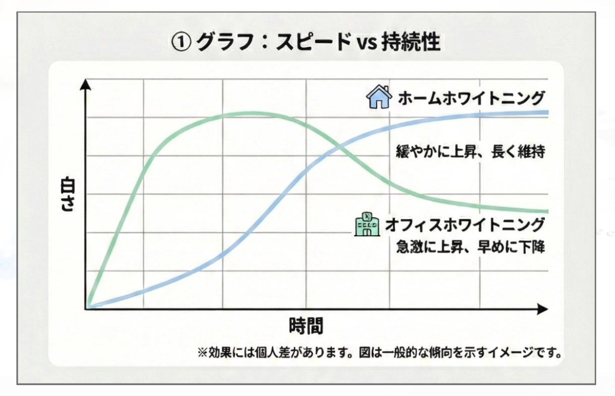 「デュアルホワイトニング」は、提携の歯科クリニックで行う「オフィスホワイトニング」と、自宅で継続する「ホームホワイトニング」を組み合わせた手法です。