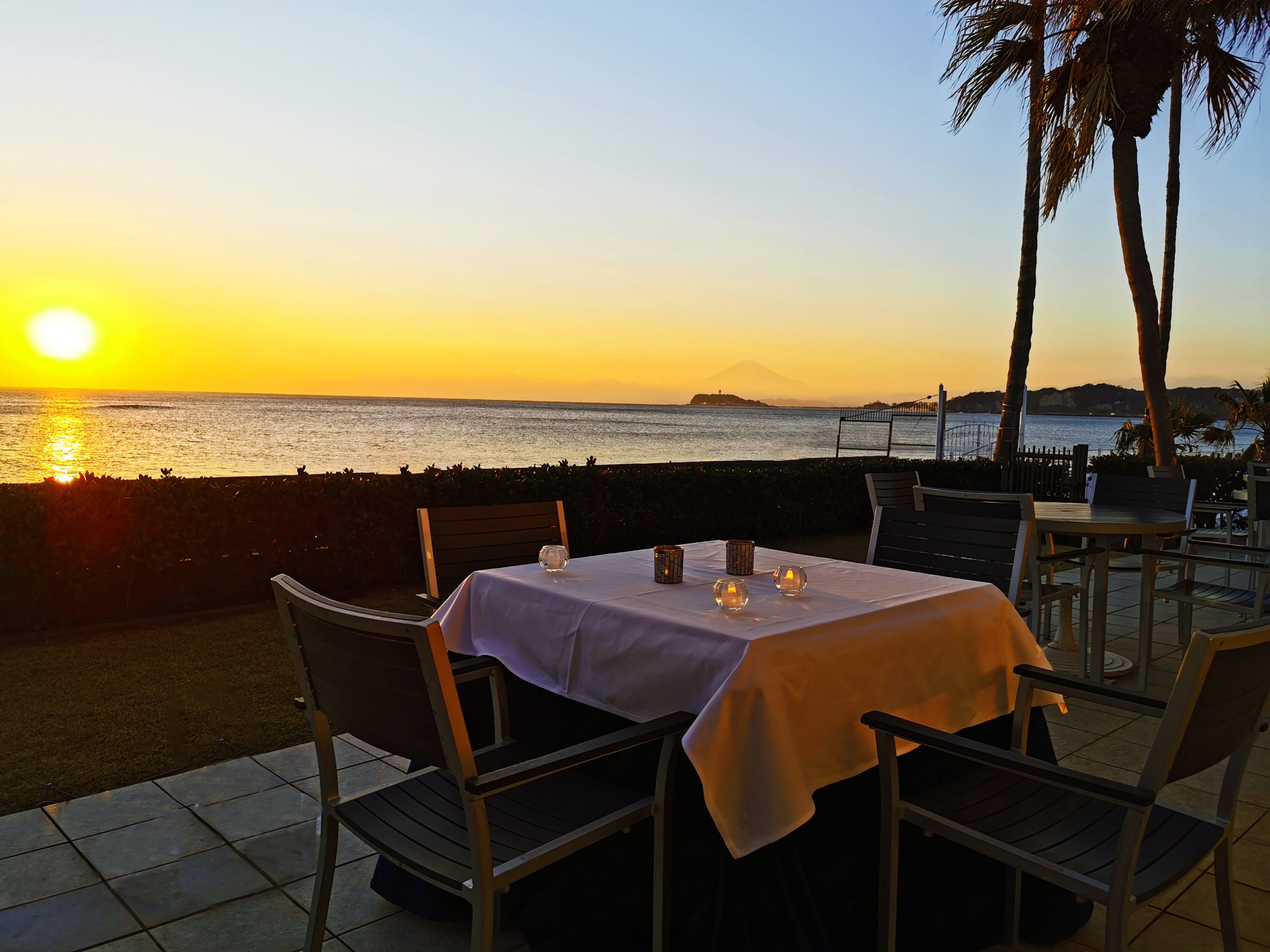 数々の映画やドラマの撮影地としても有名な約5万坪の敷地を有する「リビエラ逗子マリーナ」は、海外リゾートを彷彿するロケーションが人気を博し、インスタグラムのハッシュタグは18万を超えます。海岸線の国道134号線よりも海に突き出た「リビエラ逗子マリーナ」の突端にある『リストランテAO』は、相模湾の水平線が眼下に広がり、江の島、富士山を一望する絶景です。以前から開放的なテラス席は非常に人気で、愛犬同伴の方にも喜ばれていました。コロナ禍によりテラス席の需要が増していることを踏まえ、この度、テラス席に「こたつ」を新設しました。「寒い冬でも足元を温かく、テラス席で絶景ロケーションとディナーを愉しんでいただきたい」とのスタッフのアイディアから生まれました。