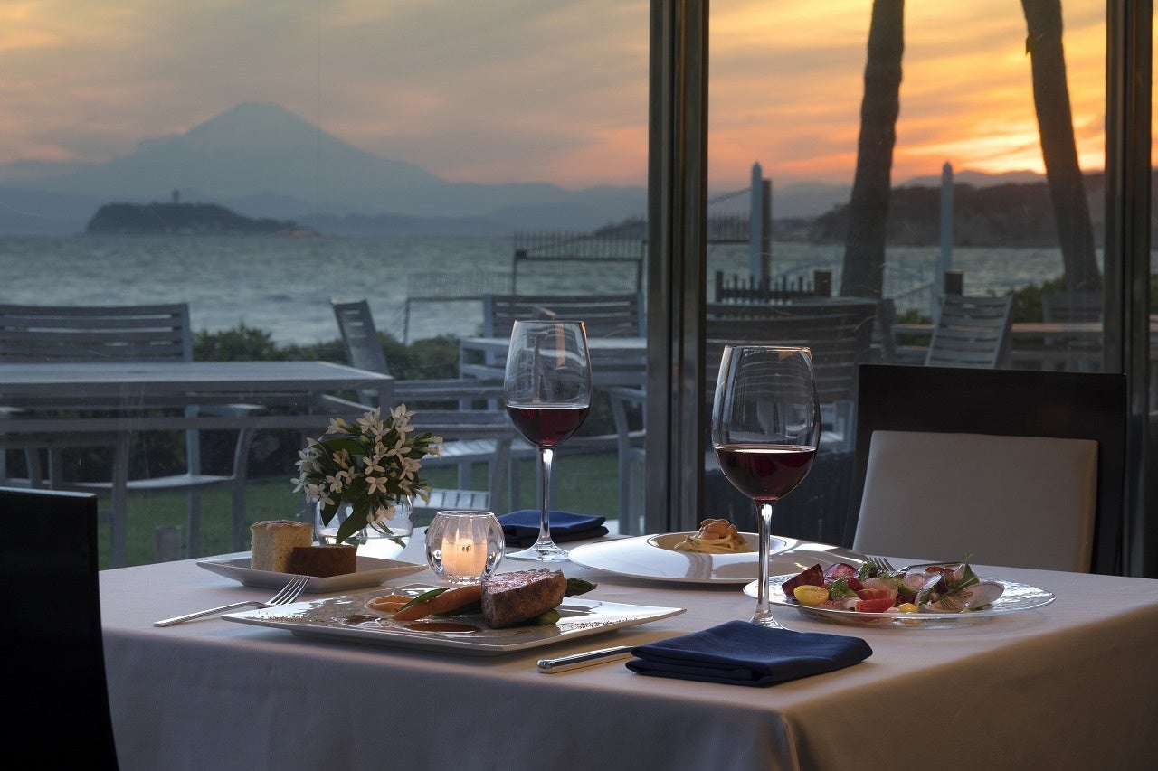 都心から約60分、鎌倉駅から10分のマリーナリゾート「リビエラ逗子マリーナ」の突端にあり、富士山と江の島を望む全席オーシャンビューを備え、「旬を味わう」がコンセプトのモダンイタリアンです。相模湾で水揚げされた魚介類をはじめ、リビエラ逗子マリーナ内菜園で循環農法を用いて自社栽培するリビエラ循環野菜、鎌倉野菜、希少な葉山牛など地産地消にこだわり、アラカルト、コース料理、本格窯の焼き立てピザに定評があります。イタリア本土のミシュラン星付きレストランで修業を積んだ新進気鋭のシェフ小川は、日本料理から料理人を始めた経験から、旬を感じる料理をコンセプトに、毎月新メニューを考案し、普段のお食事から記念日使いにも相応しい洗練された空間と料理を提供します。「葉山牛指定飲食店」に指定され葉山牛が食べられる11店のうちの一つです。