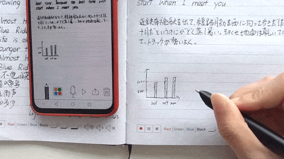ノートに書いたメモを瞬時にデジタル化、データとして保存・共有するだけでなく、書いた順序まで記憶し再生することもできます。