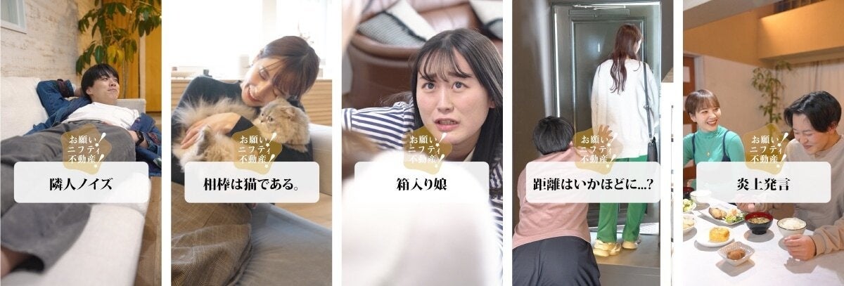 騒音問題に悩む大学生が快適な住環境を求めてお部屋探しをする「隣人ノイズ」篇、働く女性が愛猫に癒される暮らしを追求する「相棒は猫である。」篇など、“あるある!”“私と同じ!”と共感を呼び起こすショート動画を揃えました。ニフティ不動産公式YouTubeやTikTok等にて順次公開いたします。