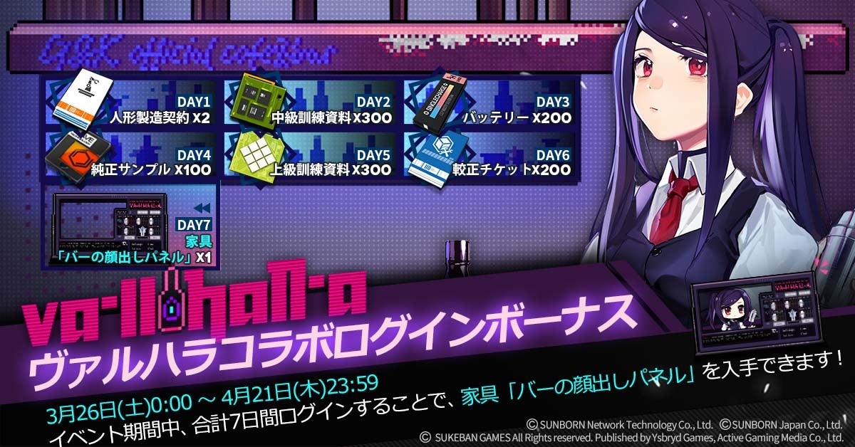 また、『VA-11 Hall-A(ヴァルハラ)』とのコラボイベントに先駆けて、ログインイベントを開催いたします。