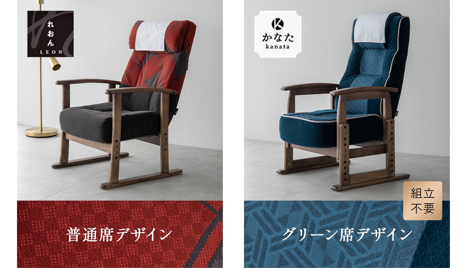 ■普通席デザイン:組立必要(約20分) ■グリーン席デザイン:完成品(高さ調節の際は組み立てが必要です) |
