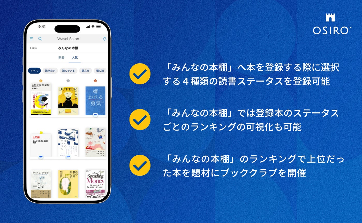 OSIROは今後も、読書という個人的な体験をきっかけに、メンバー同士がより深く、温かくつながるための機能開発を推進してまいります。