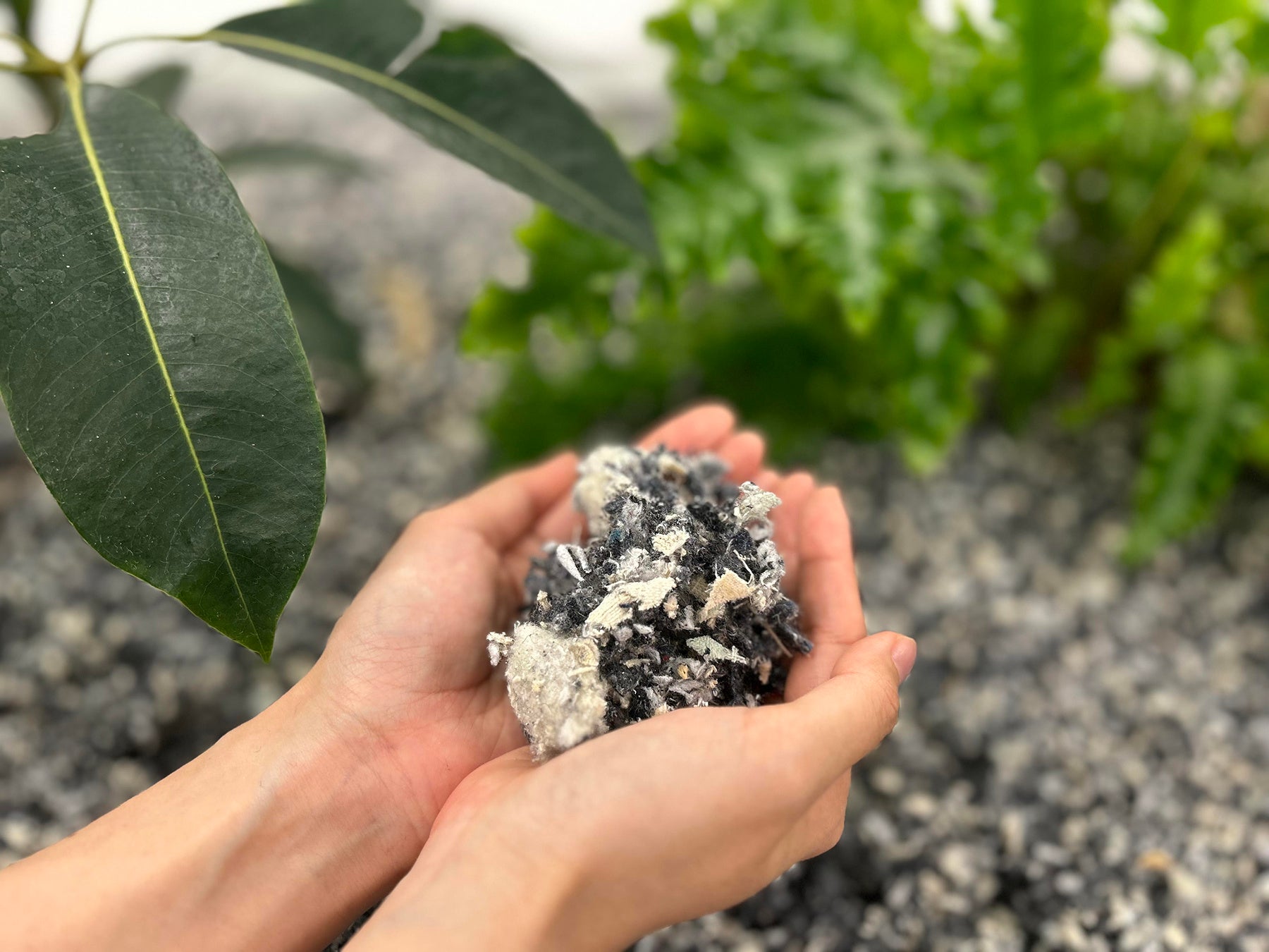 敷地内の植栽エリアには、ポリエステル繊維をリサイクルして生まれた土「TUTTI®」※を採用しました。同マンションに採用した「TUTTI」は、本来廃棄されてしまうサンゲツのカーテン生地を回収・アップサイクルしたオリジナル版です。