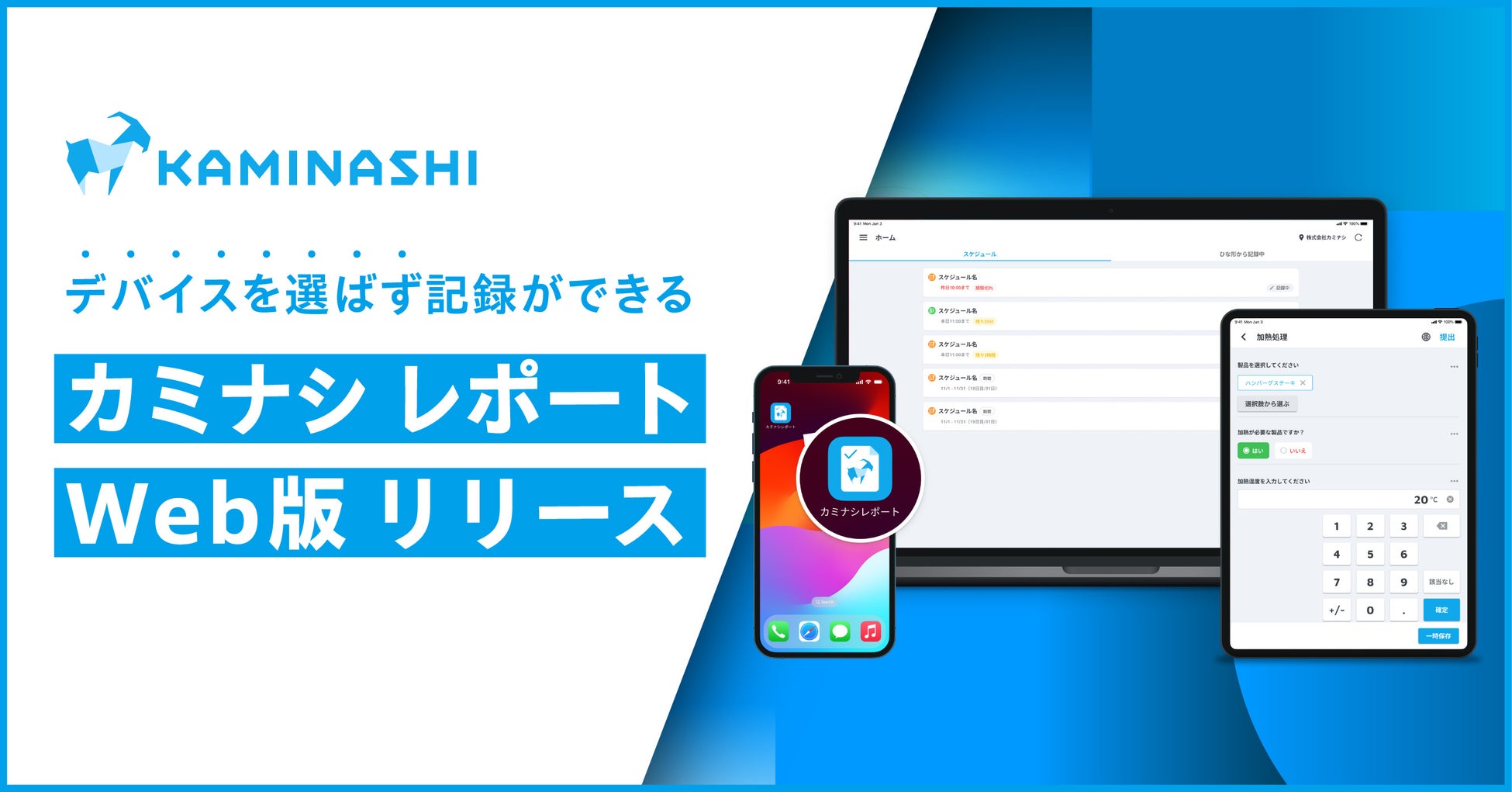 現場DXプラットフォーム『カミナシ』シリーズを提供する株式会社カミナシ(本社:東京都千代田区、代表取締役:諸岡 裕人、以下「カミナシ」)は、現場帳票システム『カミナシ レポート』の記録用のアプリケーションとして、さまざまなデバイスで利用できる『カミナシ レポート 記録アプリ(Web)』をリリースしました。