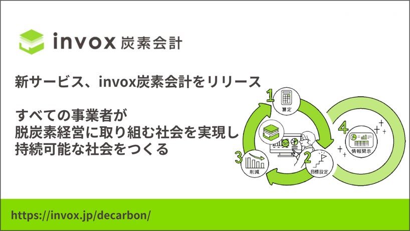 株式会社invox(本社:東京都新宿区、代表取締役:横井 朗、以下、当社)は、新サービス「invox炭素会計」を2025年5月19日にリリースいたしました。「invox炭素会計」は、業務効率化で蓄積した請求データをもとにAIが適用する排出係数を推定し、温室効果ガスの排出量をスコープ3まで効率的に算定。グリーン調達やカーボンクレジットを活用したオフセット支援まで、企業の脱炭素経営をワンストップで支援します。