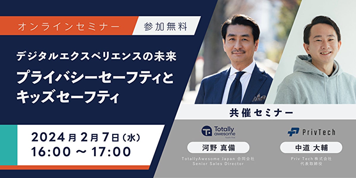 【共催Webセミナー】TotallyAwesome × Priv Tech『デジタルエクスペリエンスの未来: プライバシーセーフティとキッズセーフティ』2月7日(水)16時開催