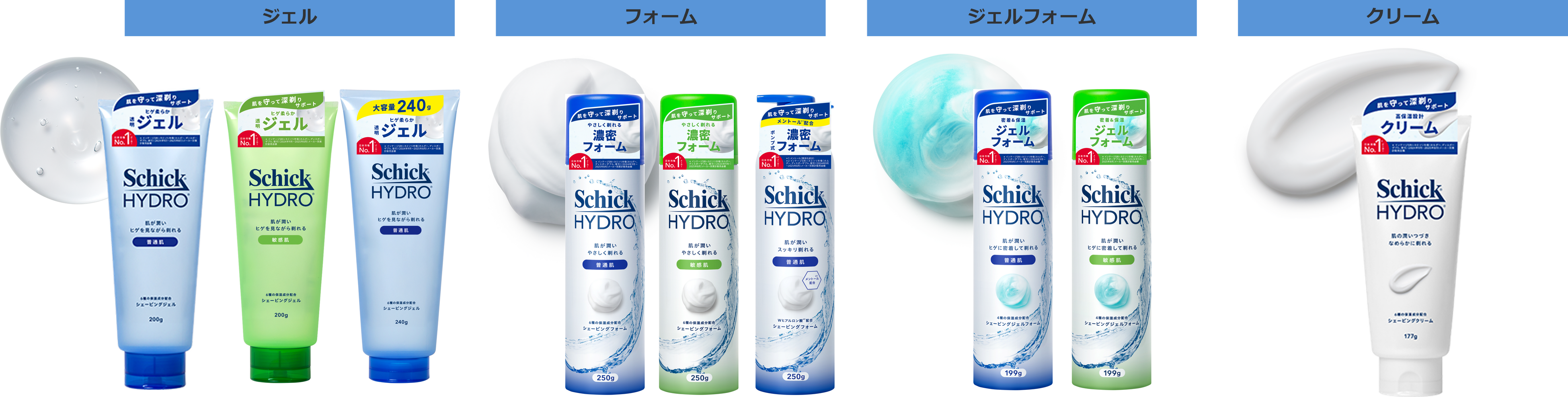 ■シェービング剤:「ジェル」「フォーム」「ジェルフォーム」「クリーム」の全4剤型・9製品