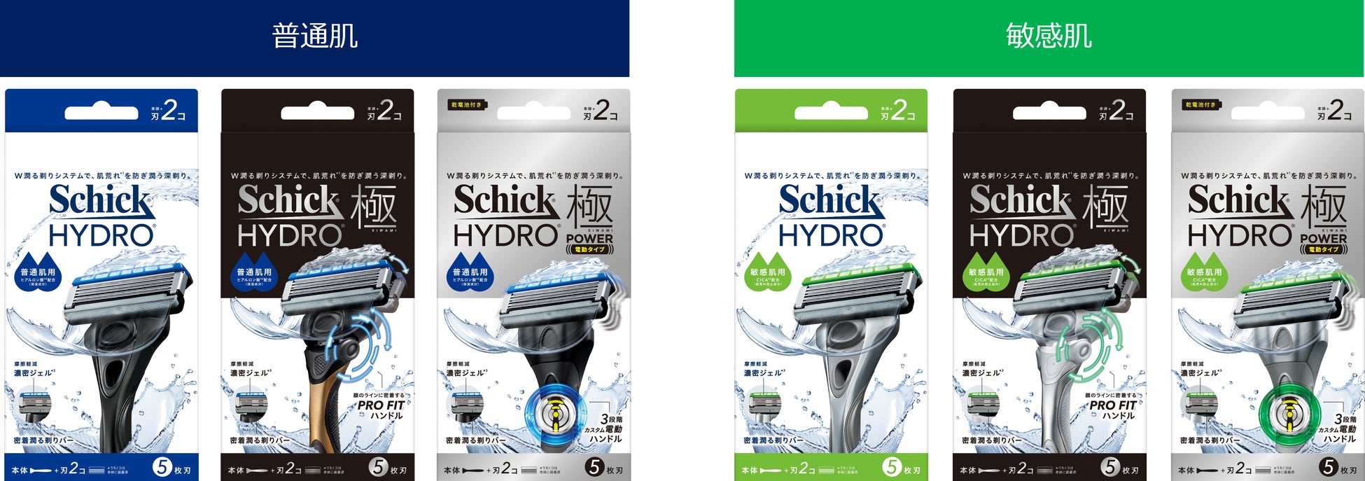 すべてのモデルでカートリッジ性能を大幅にグレードアップし、これまで以上のやさしさと深剃りを実現しました。また、ホルダーデザインも一新。ミニマルでモダンなツートーンカラーデザインを採用し、敏感肌用は「グレイ×シルバーメタリック」、普通肌用は「ブラック×ゴールドメタリック」と、機能だけでなくデザイン面でも洗練された印象に生まれ変わりました。さらに、高機能モデルとして人気の「極(きわみ)」シリーズがHYDRO(ハイドロ)ブランド傘下に加わり、ブランド全体での機能強化と選びやすさを追求。日本カミソリ市場シェアNo.1*2ブランドとして、男性一人ひとりの肌とヒゲに寄り添う新しいシェービング体験を提供します。