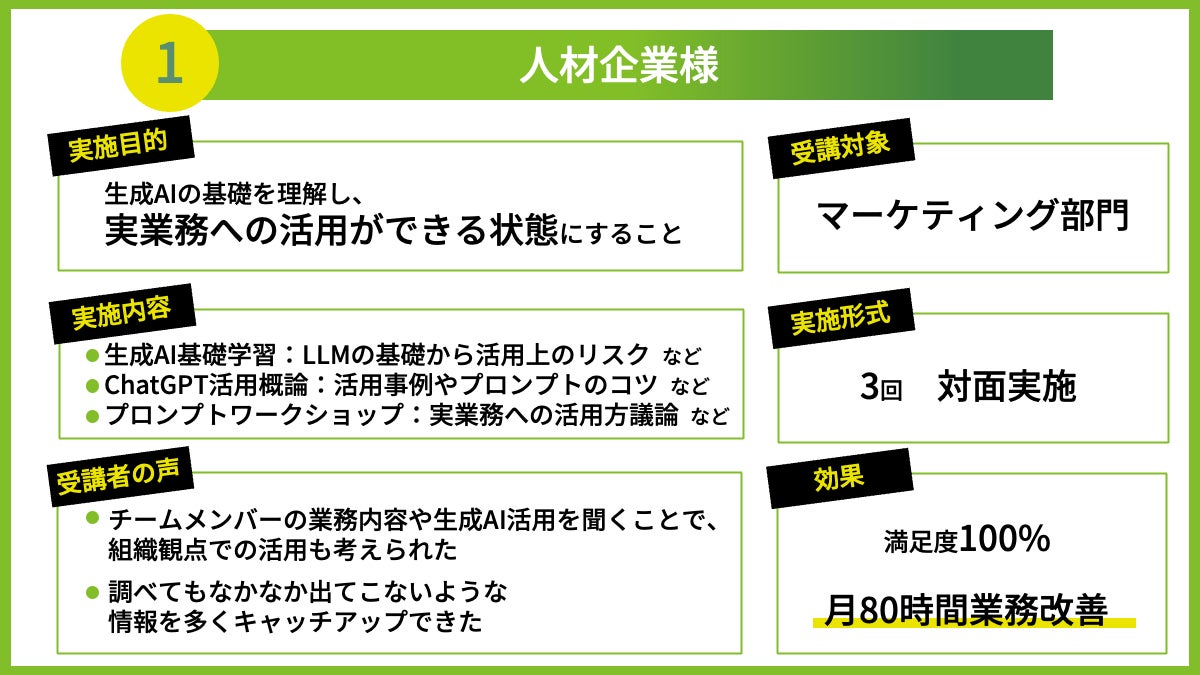 各企業のニーズに合わせてカスタマイズした実施内容と実際の効果をご紹介