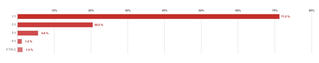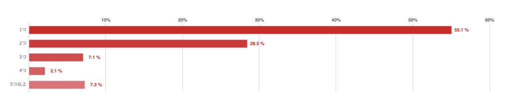 「1つ」が55.1%で最も多く、「2つ」が28.5%でこれに続いた。また、「5つ以上」が次に7.3%となった。