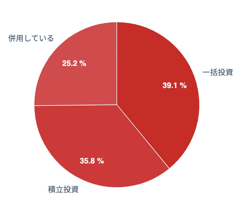 「一括投資」(39.1%)と「積立投資」(35.8%)がほぼ同数で並んだ。また、「併用している」との回答も25.2%あった。