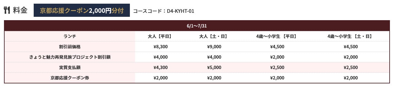 株式会社フォーティーズ(本社:大阪市鶴見区、代表取締役 岡武史)は7月31日迄延長になった「きょうと魅力再発見旅プロジェクト」の対象商品としてリーガロイヤルホテル京都・ホテルオークラ京都・からすま京都ホテルのレストランと往復ハイヤーがセットになったパックツアーの販売を開始しました