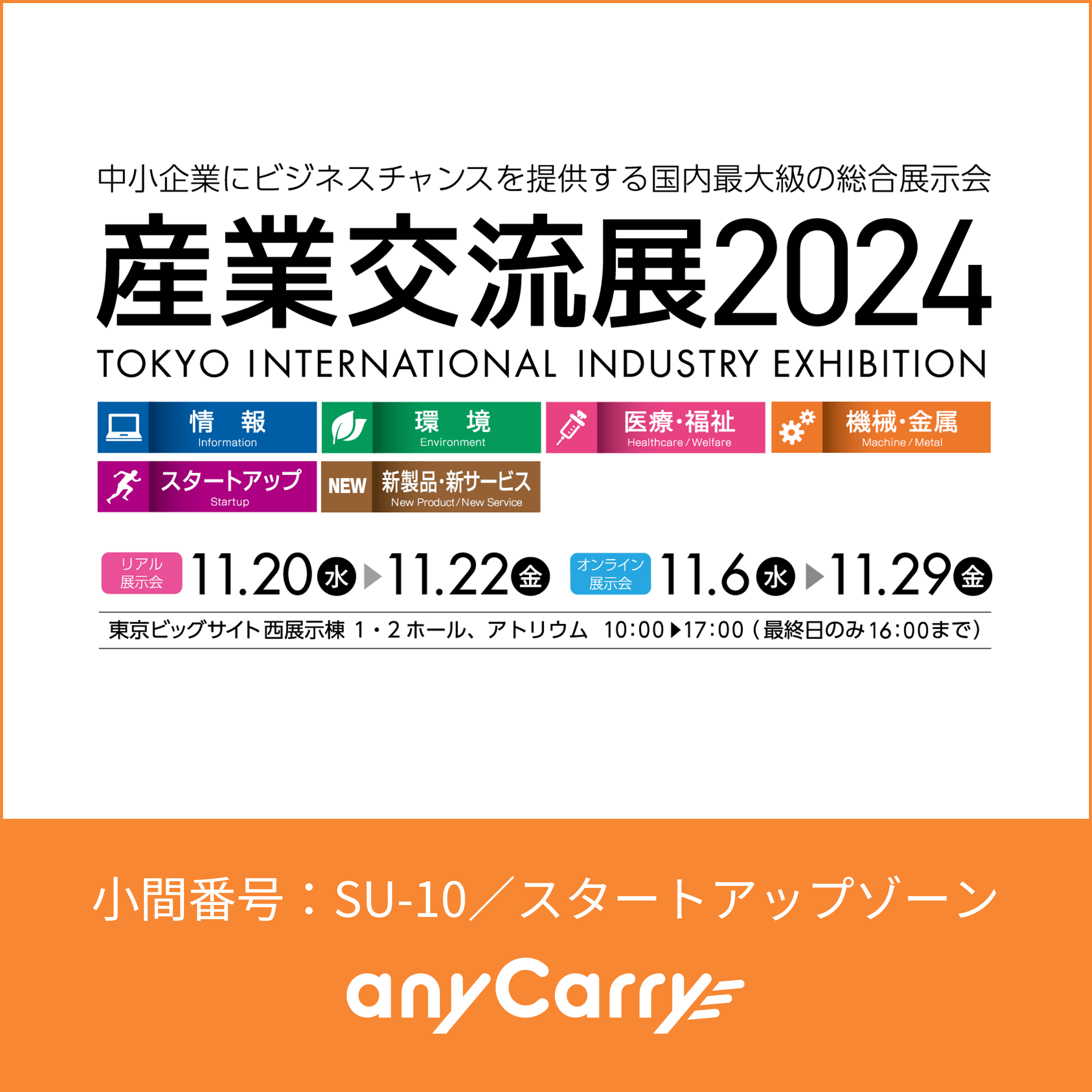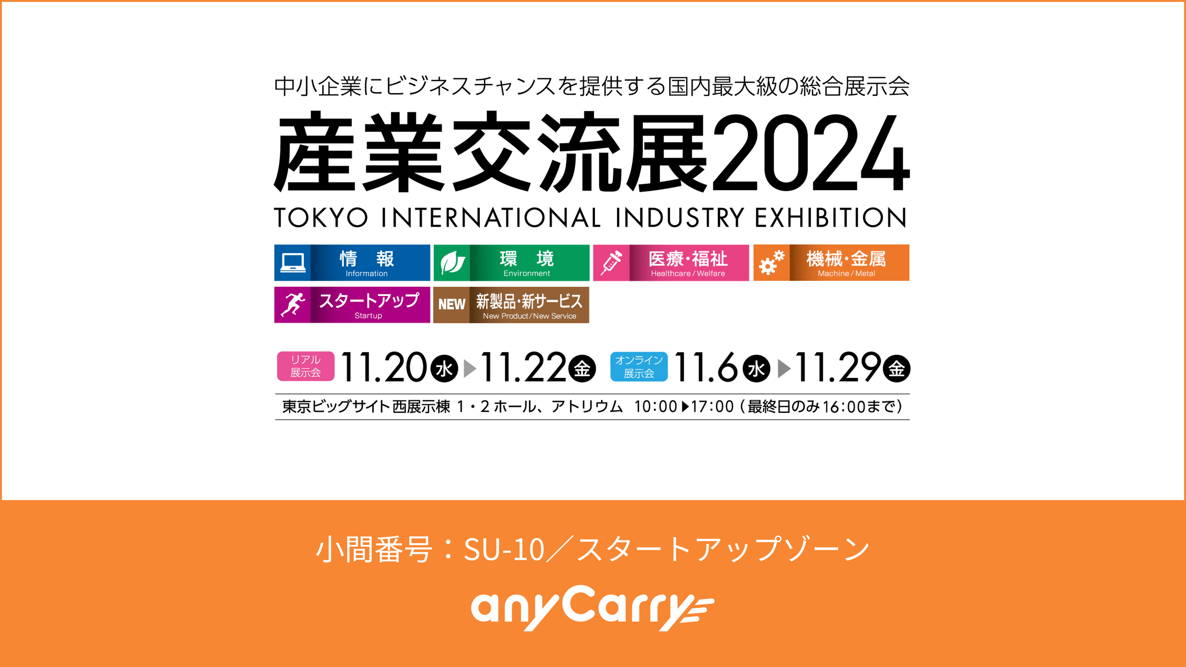 ラストマイル物流に特化した物流ソリューション事業を展開する株式会社エニキャリ(以下当社)は、11月20日(水)から11月22日(金)の3日間、東京ビッグサイト西展示棟で開催される「産業交流展2024」に出展します(小間番号:SU-10)。