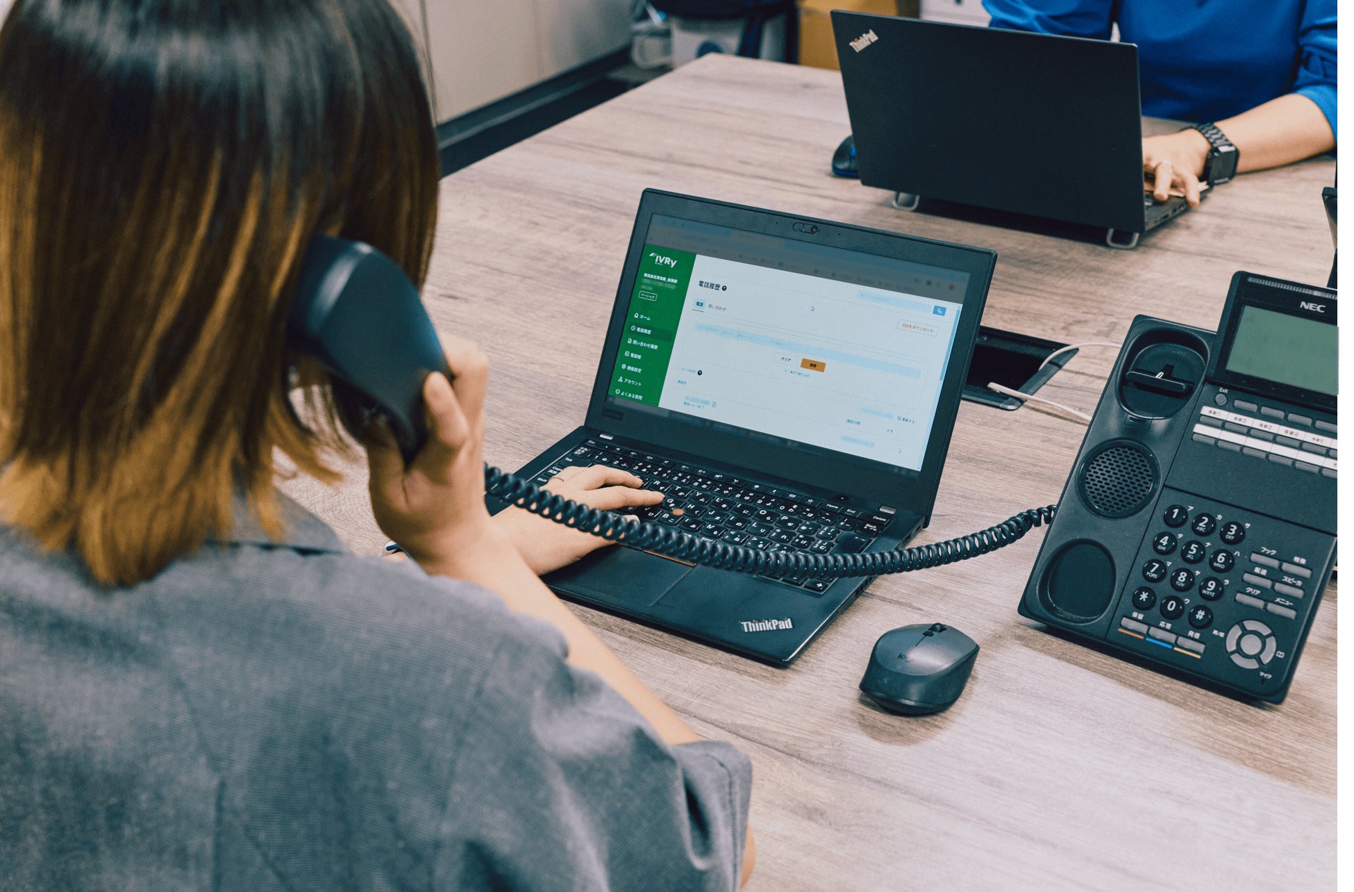 (画像・左)着電履歴を確認しながら電話対応をする様子