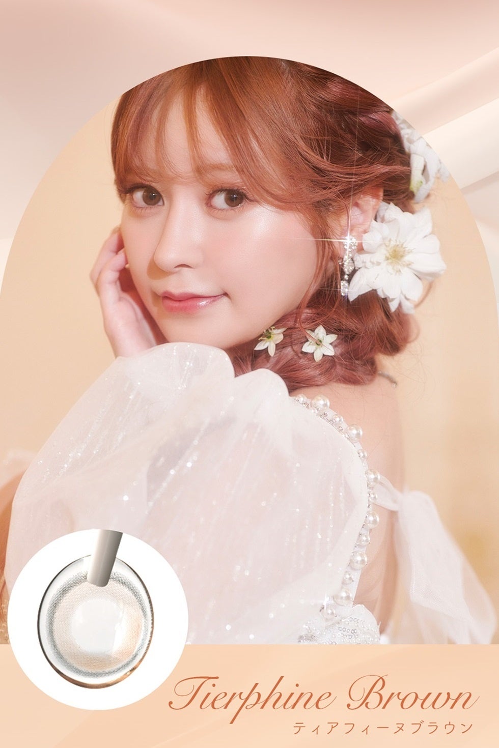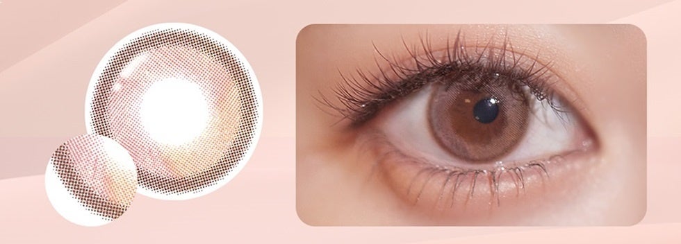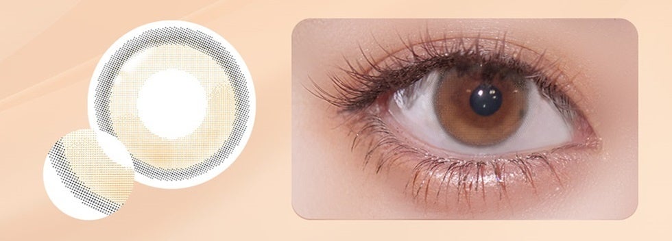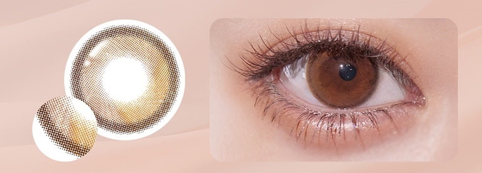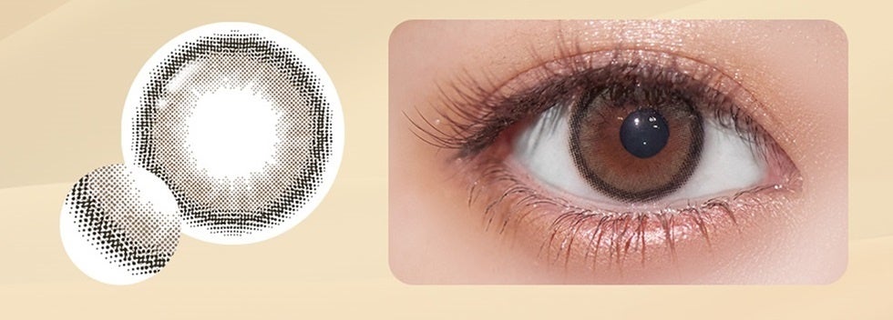 ブラウンとライトベージュが瞳に艶感を出す水光レンズ。
