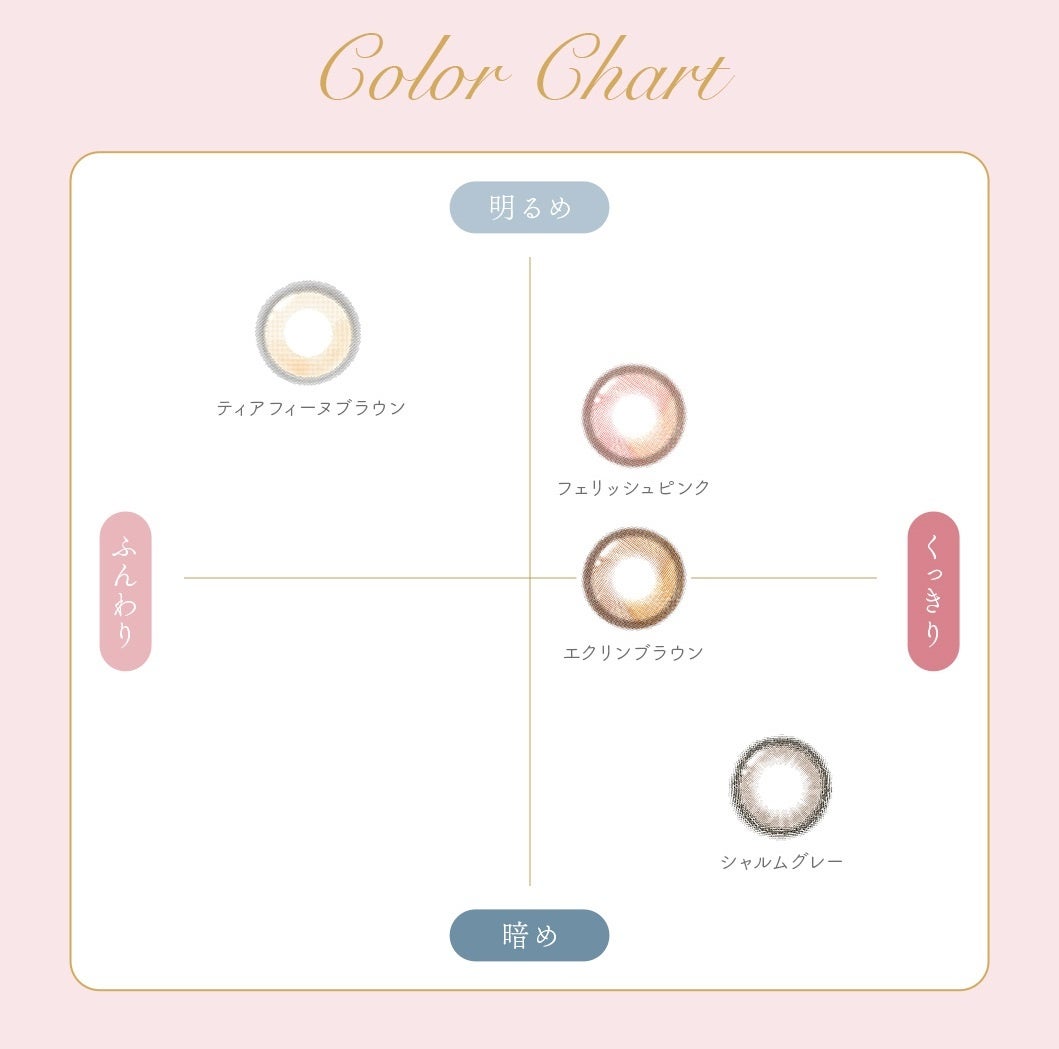 ・レンズカラー:フェリッシュピンク、ティアフィーヌブラウン、エクリンブラウン、シャルムグレー