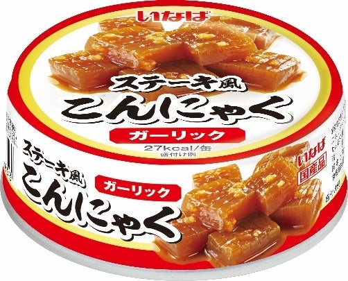 いなば食品株式会社(本社:静岡県静岡市清水区由比)は、こんにゃくをこだわりのソースで味付けした缶詰シリーズ「ステーキ風こんにゃく ガーリック」と「ステーキ風こんにゃく 和風おろし」を新発売いたしました。長期保存が可能な缶詰ならではの究極の味染みをお楽しみください。