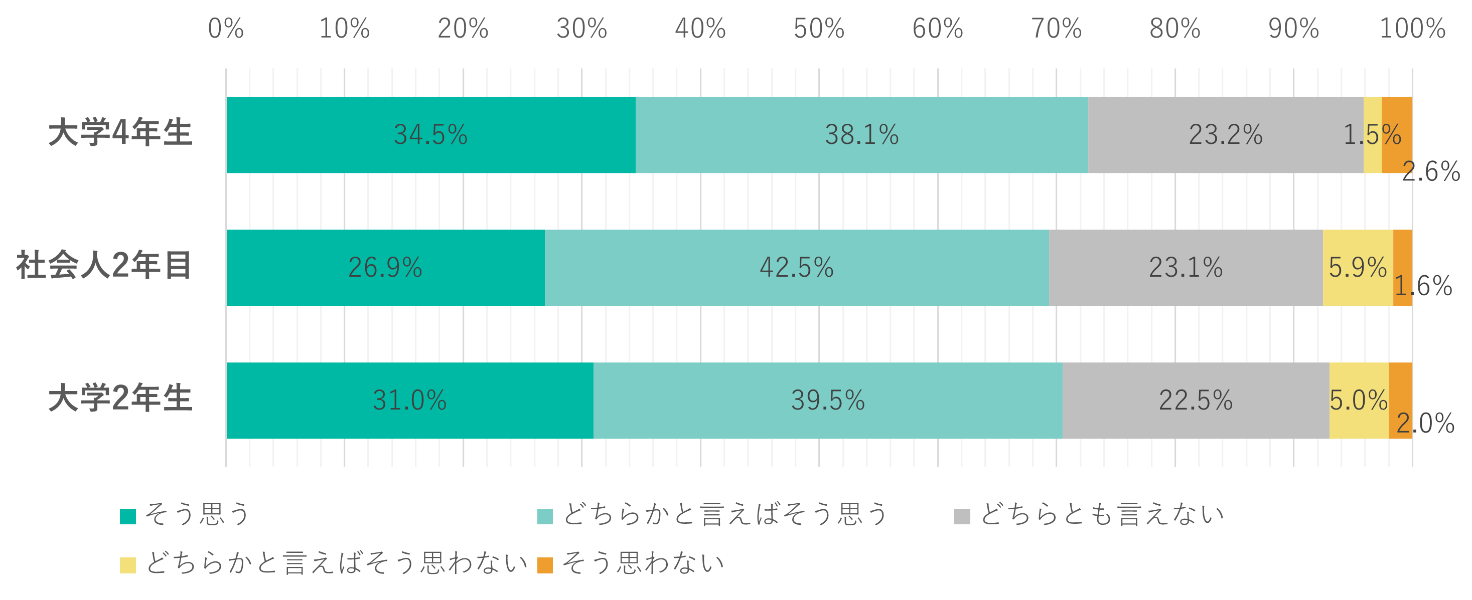 インタツアーが19~25歳に調査したアンケートによると、就職活動を通じて「企業側は自社を良く言うことが多く、信用しにくい」について、大学4年生の60.5%、社会人2年目の58.1%が「そう思う」「どちらかと言えばそう思う」を選んだことがわかりました。