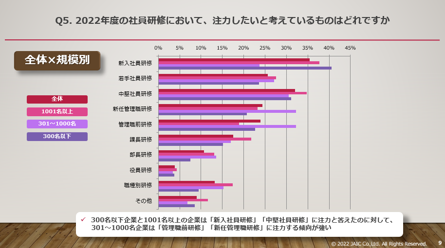 5. 2022年度の社員研修において、注力したいと考えているものはどれか