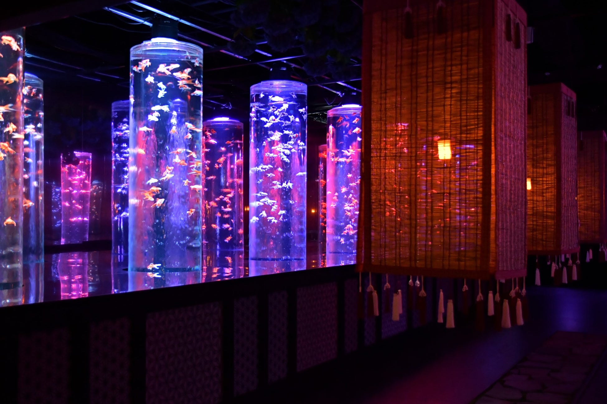 アートアクアリウム美術館は室内で日本の四季折々の演出を楽しめる金魚アート美術館です。雨が多くなるこれからの季節ですが、当館ではお天気に左右されずゆっくりと幻想のアート鑑賞をお楽しみいただけます。金魚が優雅に泳ぐ、初夏の幻想的な“艶”空間を堪能する、ここでしか味わうことのできない季節の訪れを、ゴールデンウイークのおでかけとあわせてぜひお楽しみください。