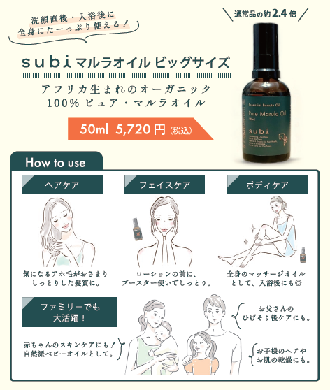 大好評 “subi マルラオイル” ビッグサイズ が再販決定!!【style table(スタイルテーブル)Ethical&SEA(エシカルシー)】