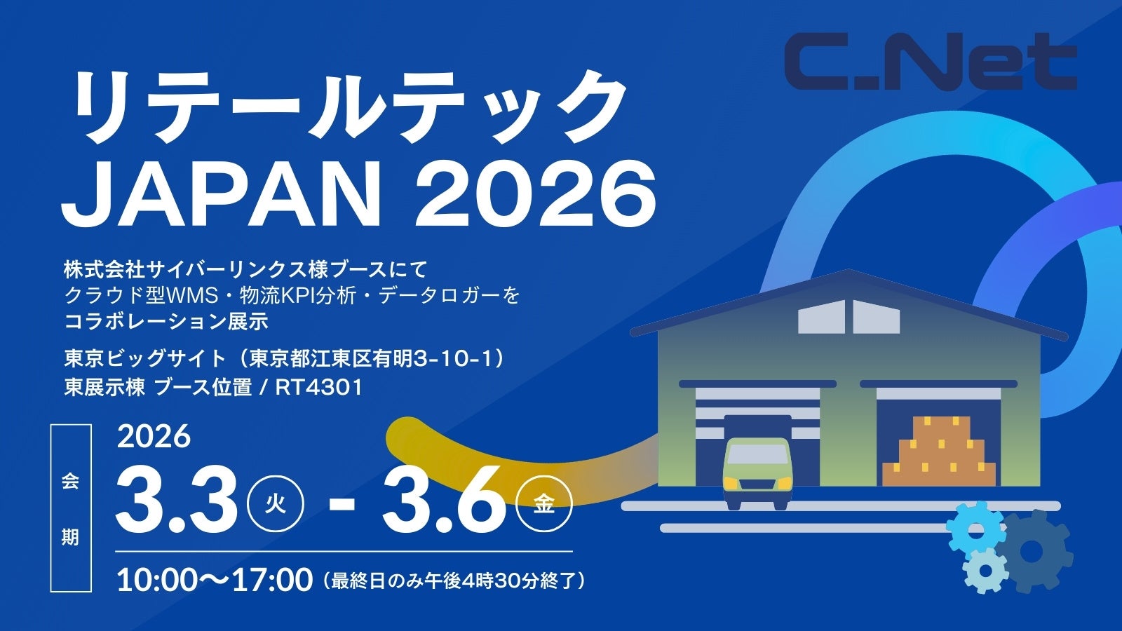 クラウド型倉庫管理システム(WMS)の開発・提供を手掛ける株式会社シーネット(本社:千葉県千葉市、代表取締役社長:小野崎伸彦、以下シーネット)は、2026年3月3日(火)から6日(金)まで東京ビッグサイトで開催される「リテールテックJAPAN 2026」に出展することをお知らせいたします。
