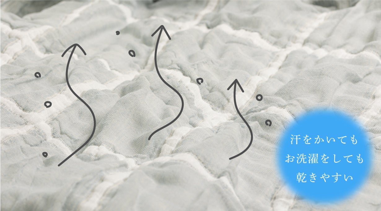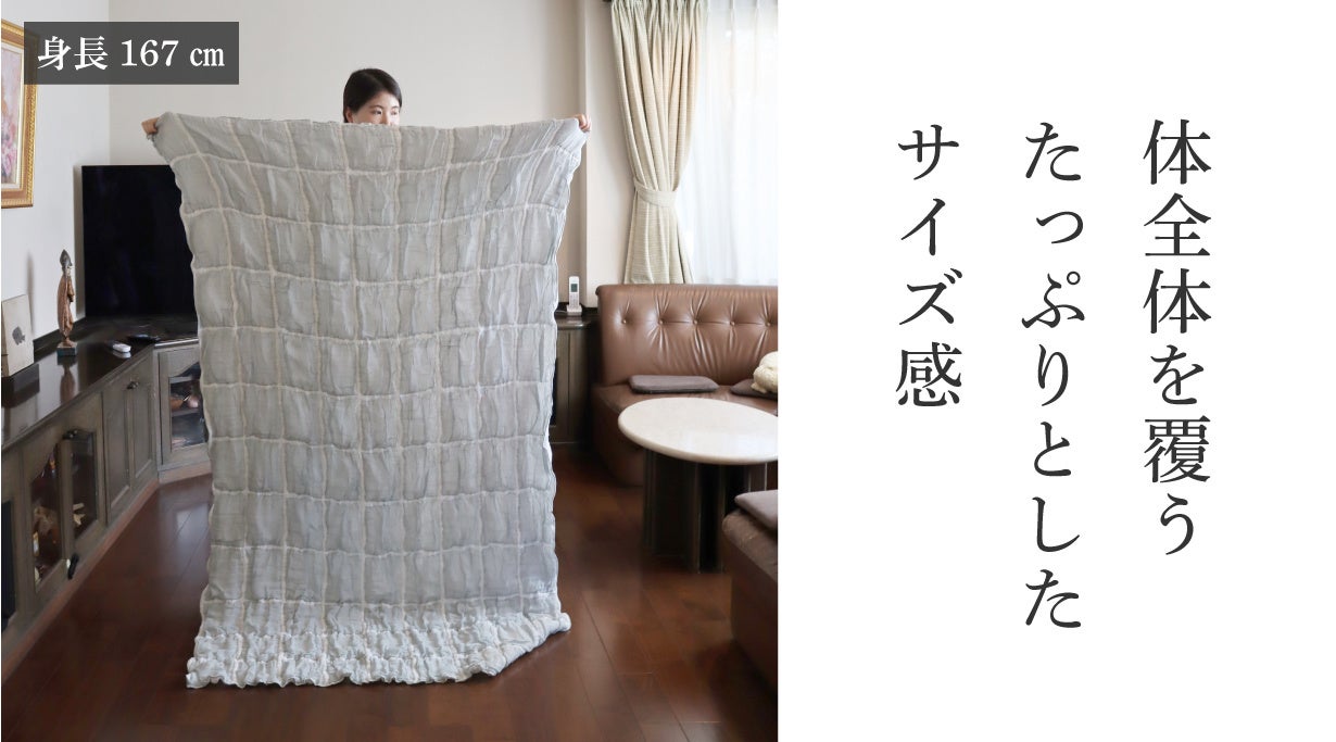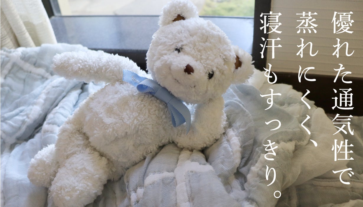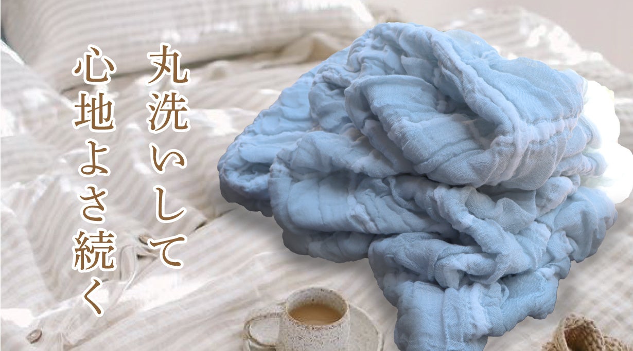 ・タイトル:創業76年タオルのプロ開発!空気の軽さと柔らかなガーゼケットで、快適な寝心地を