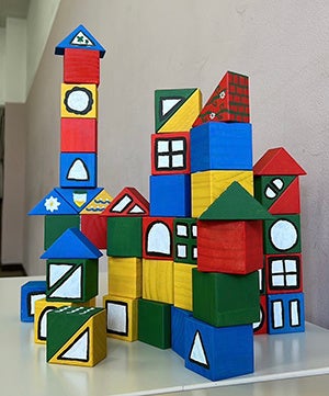 <評価ポイント> カラフルで積み上げるだけでなく、家づくりや町づくりに発展することができ遊ぶ年齢も広がる。安全面の考慮もあり、色の塗り方へのこだわりや木への愛情も感じる。