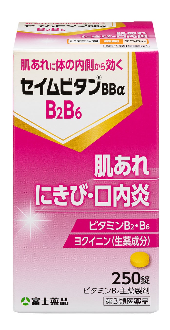「セイムビタン®BBα」は、粘膜の健康を維持する働きのあるビタミンB2・B6や、古くからお肌のために用いられてきた生薬成分のヨクイニンエキスなどを配合したビタミン剤です。