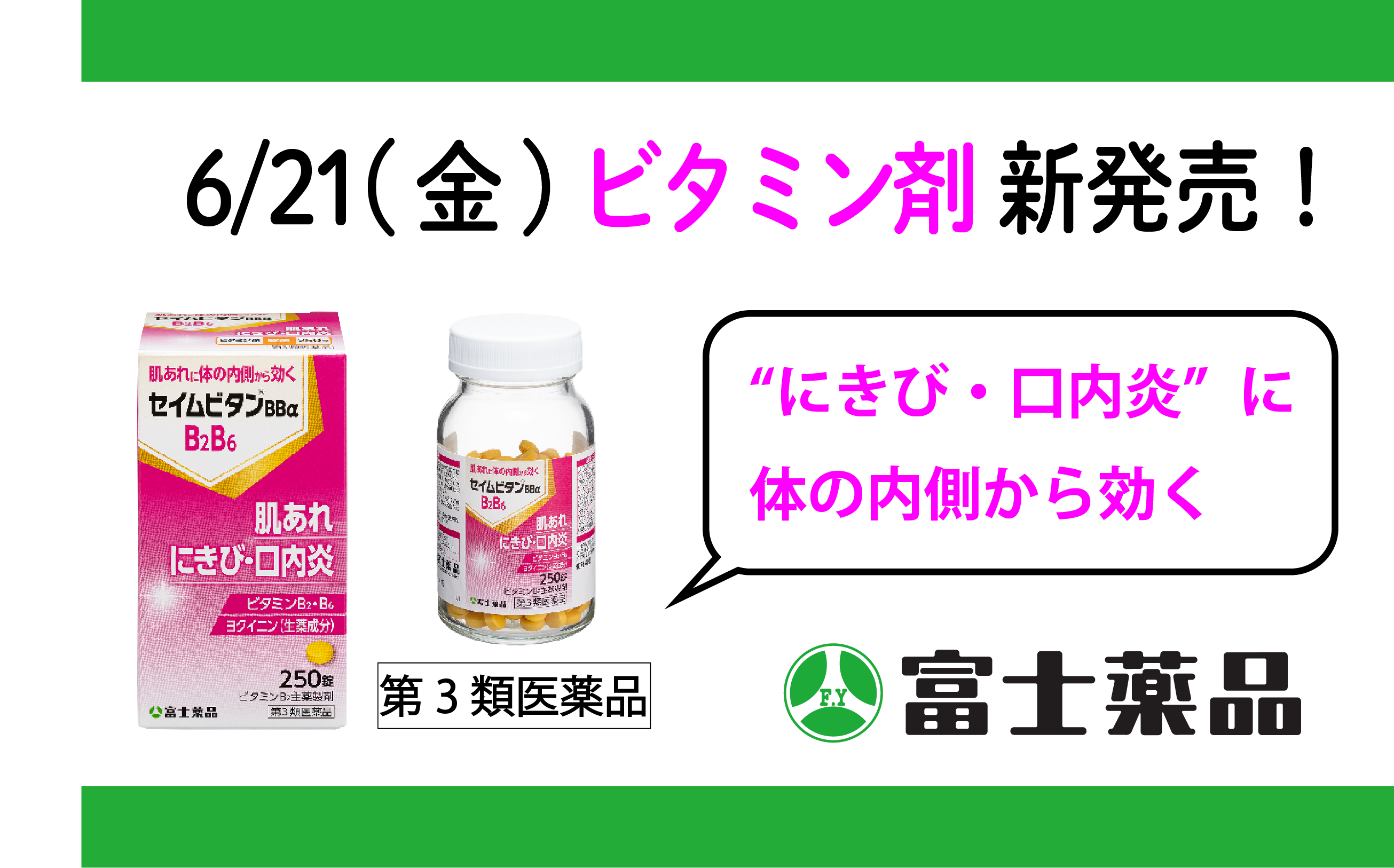 不規則な生活によりできてしまう“にきび・ 口内炎”に体の内側から効くビタミン剤「セイムビタン®BBα」6/21(金)新発売!