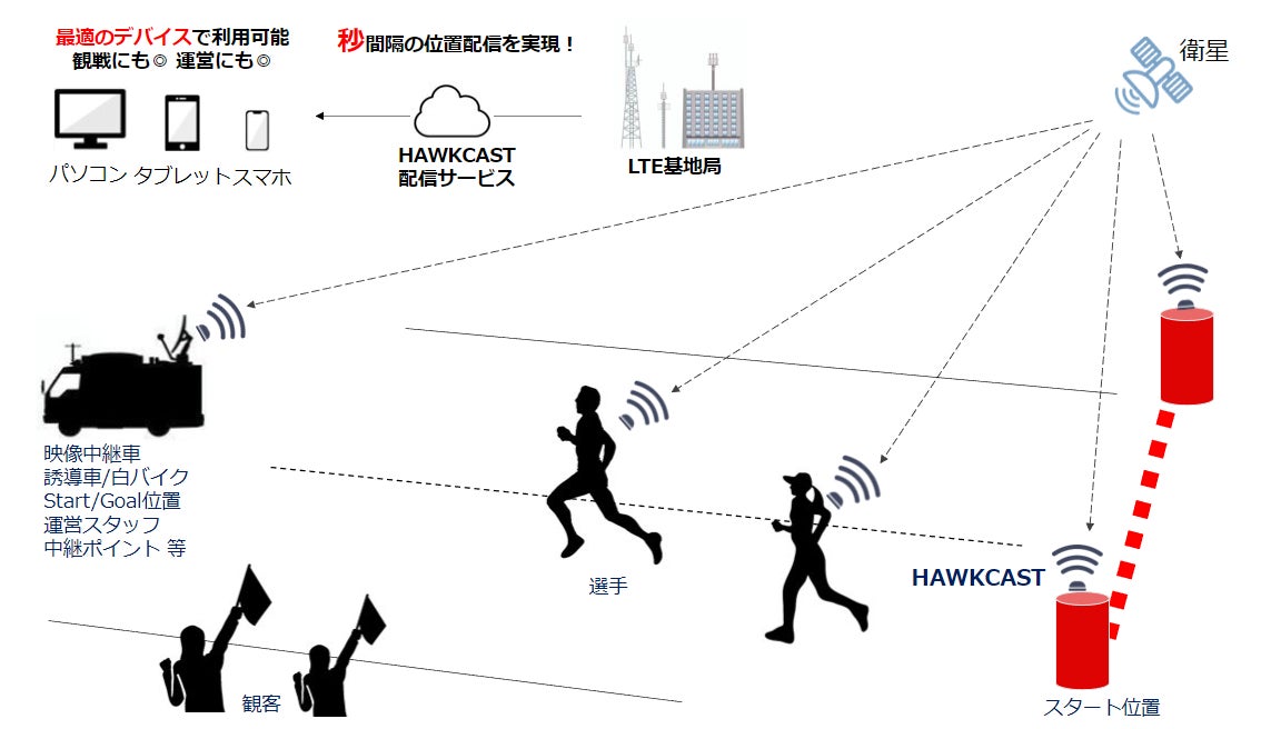 - 出場選手が装備するGPSデバイスにより「1秒単位」の位置情報を正確に把握できるGPSデバイスを出場する社員ランナーが装着する