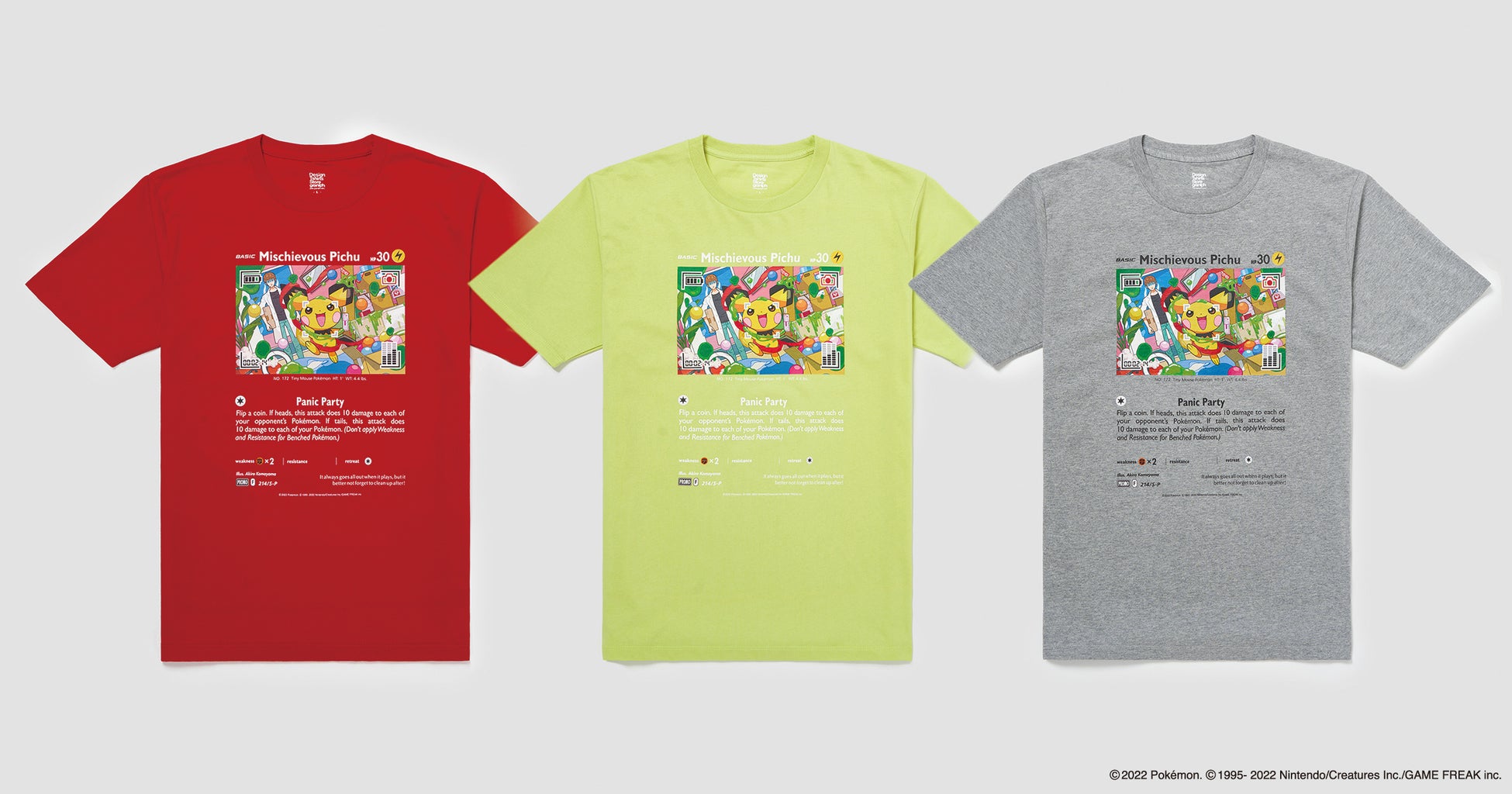 ピチューがデザインされたTシャツ、スニーカー、ハットなどが登場。Twitterプレゼントキャンペーン、ポケモンカードゲーム大会も開催。