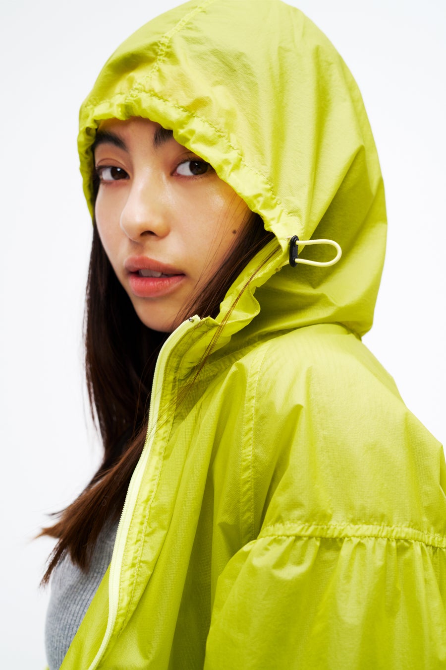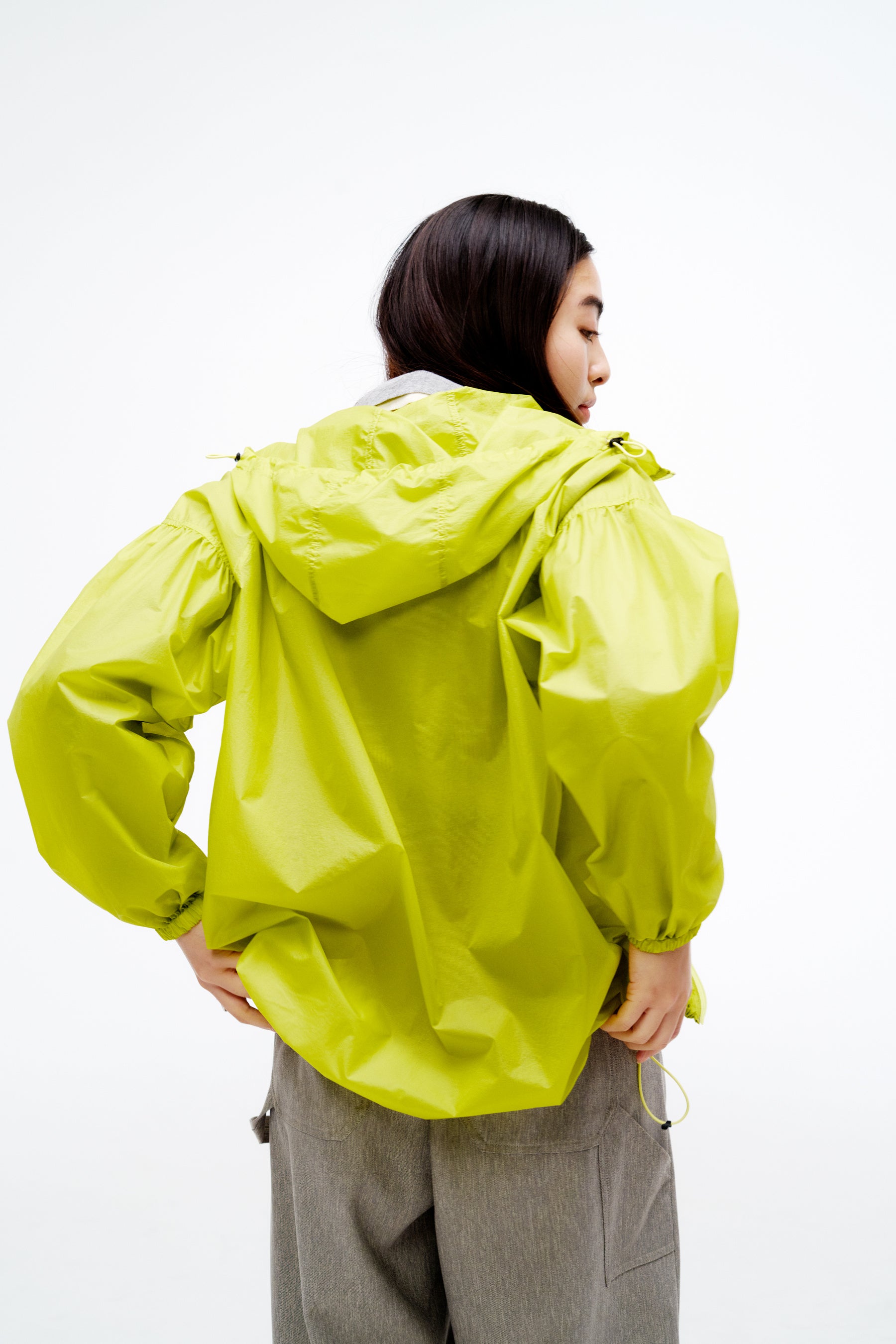 撥水加工が施された、軽量なナイロンジャケットのウィメンズモデルです。小さく収納して持ち運びしやすいパッカブル仕様なので、カバンに忍ばせておけば気温調節にも一役買ってくれます。肩のラインやバルーン気味のシルエットなど、トレンド感も意識しました。