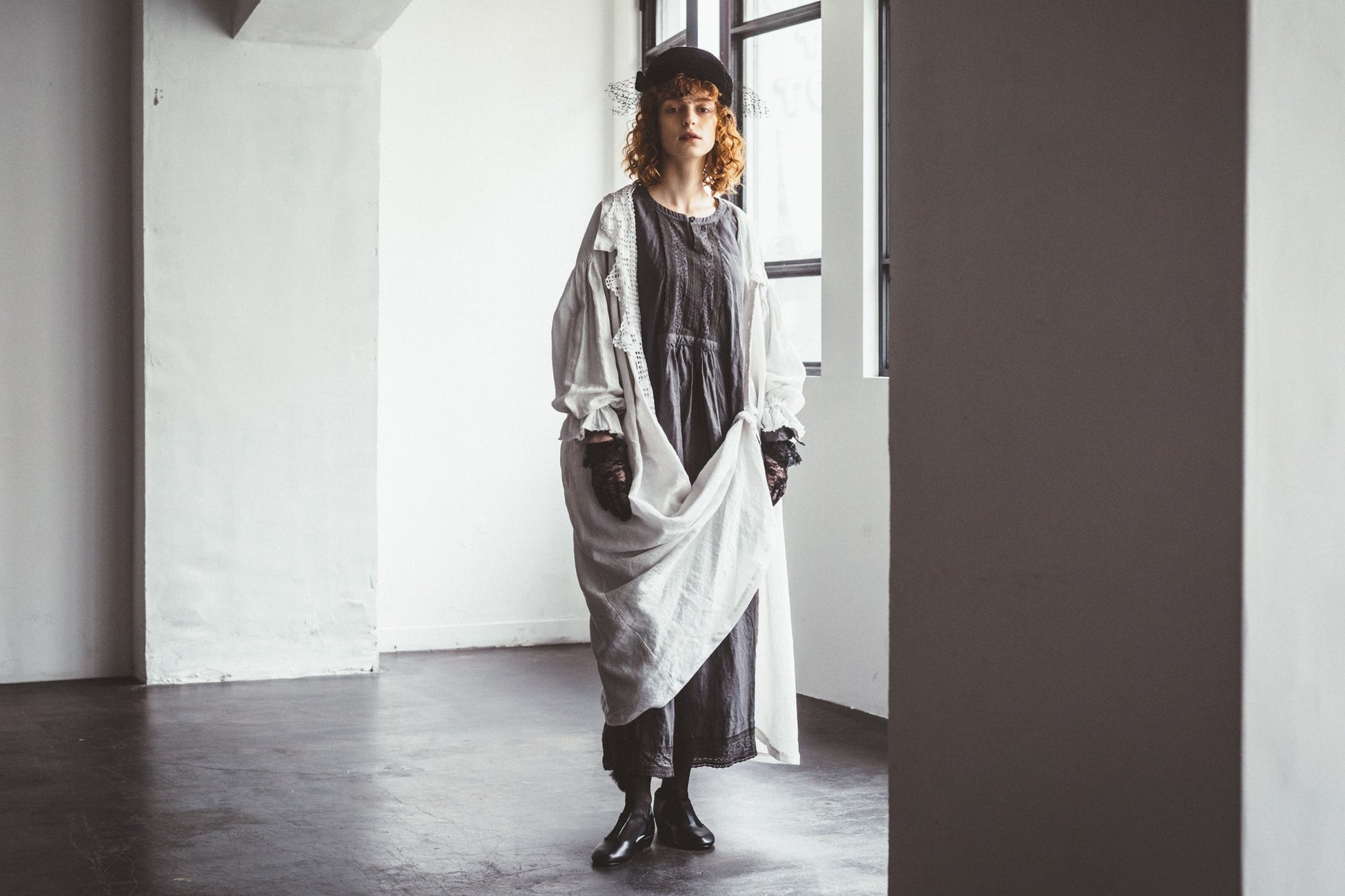ブラウスやワンピースなど様々なアイテムとのレイヤードスタイルが楽しめる1着。同シリーズのチュニックブラウスやドロワーズパンツとのスーチング・コーデもおすすめです。